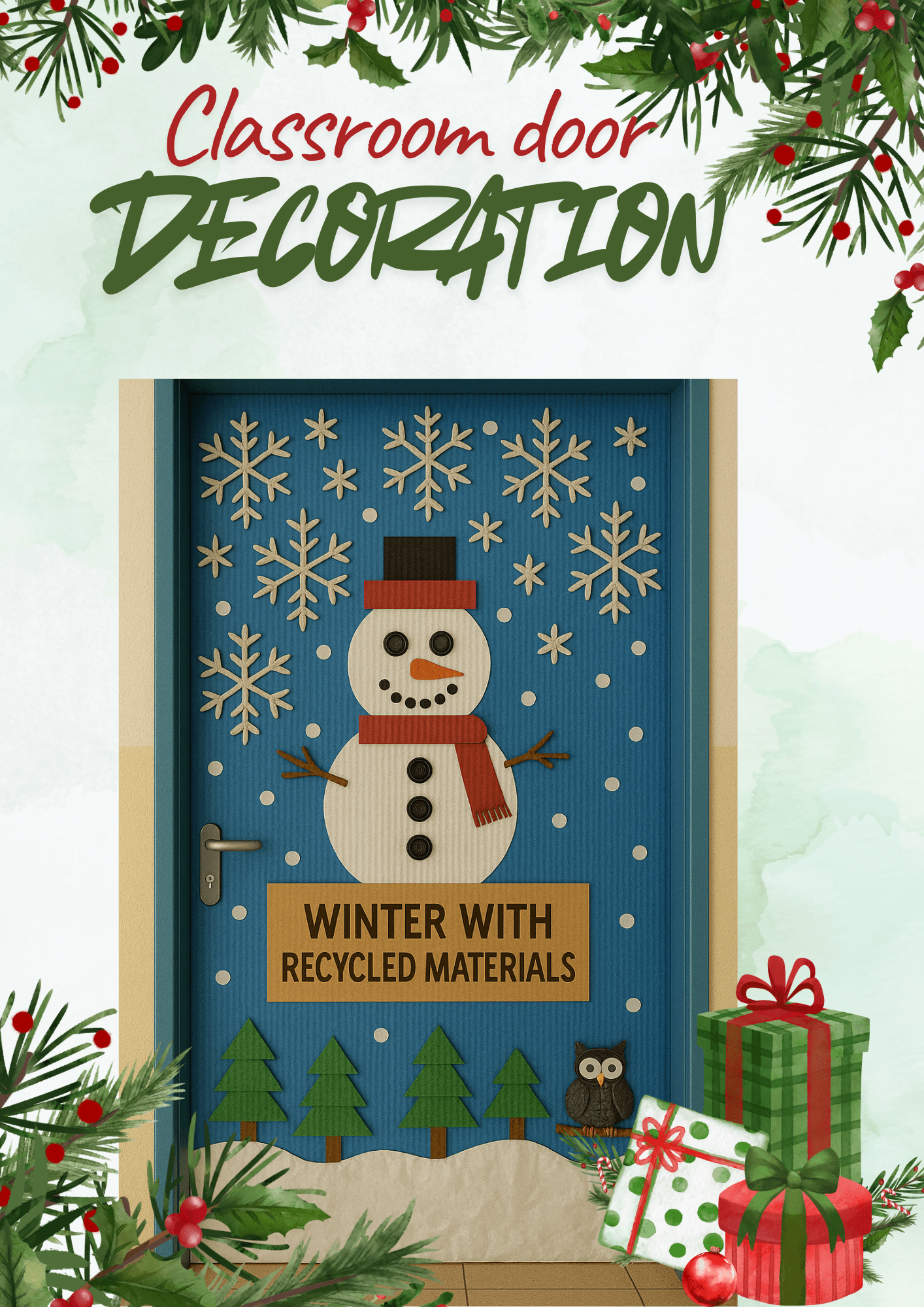 Inspired by winter and Christmas, the nursery and primary pupils and teachers let imagination enter the school, transforming classroom doors into true artistic expressions, using reused materials that were given a new life.