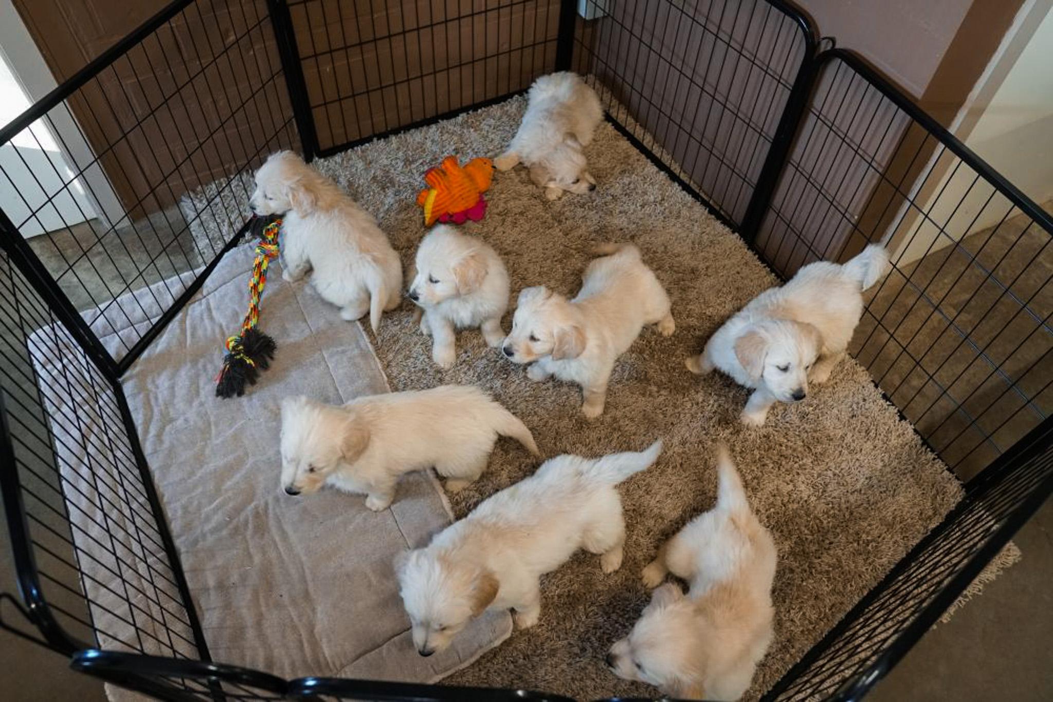 Nous sommes un éleveur agréé en Belgique. Tous nos chiots Golden Retriever à vendre ont au moins 8 semaines lorsqu'ils quittent la portée. Les parents sont présents. Les chiots sont pucés, vaccinés et vermifugés avant la vente. Ils sont tous vendus avec un passeport européen et une garantie de santé légale.