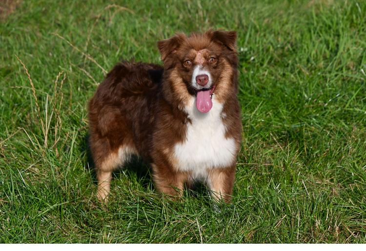 Hailey is onze prachtige red merle teef met FCI stamboom. Zij heeft een erg opgewekt karakter en zit boordevol energie. Deze bijzondere hond bracht al prachtige nestjes op de wereld en zorgt er perfect voor, met veel liefde en zorg. We zijn fier dat zij deel uitmaakt van onze kennel.