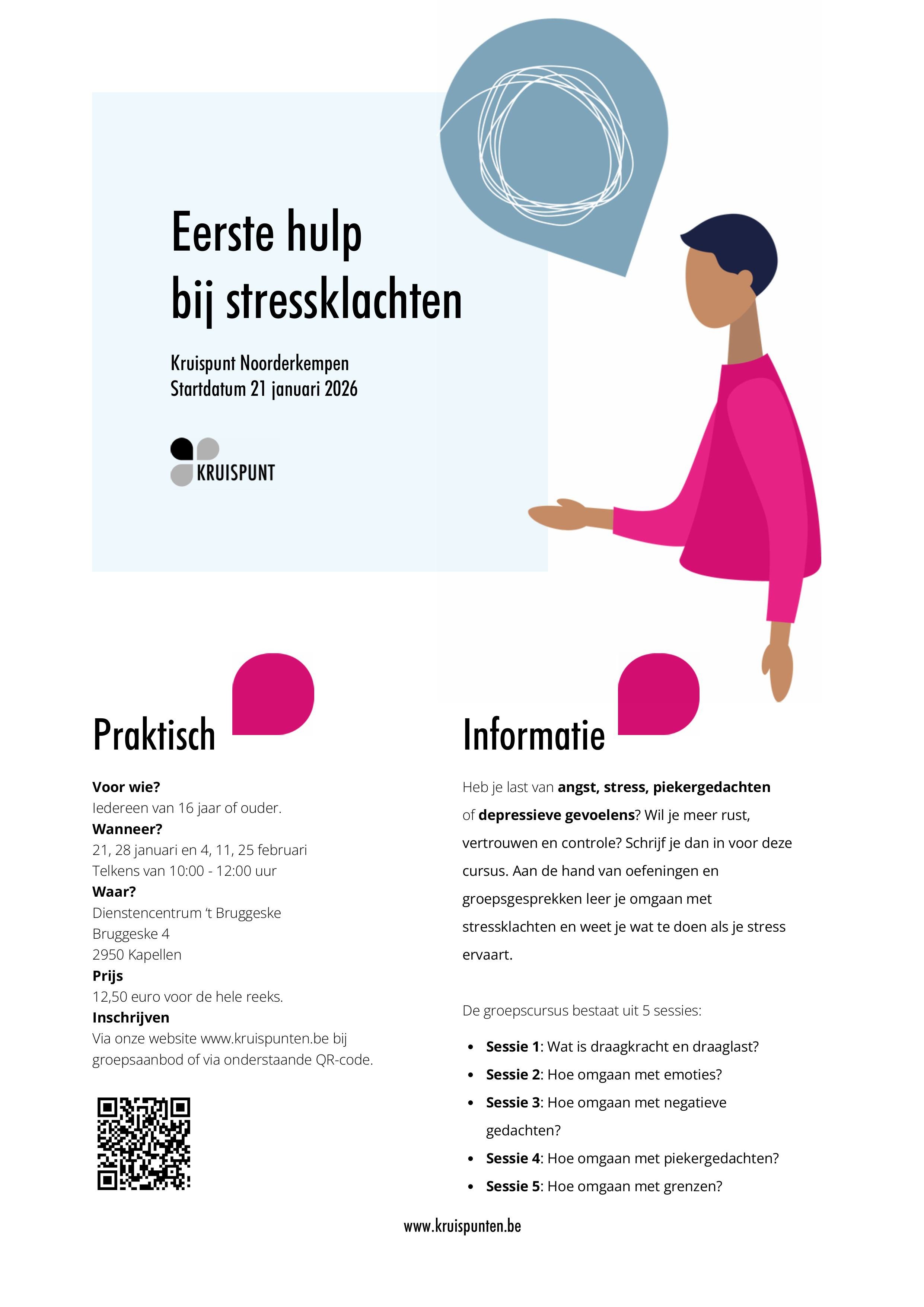 Aan de hand van oefeningen en groepsgesprekken leer je omgaan met stressklachten en weet je wat te doen als je stress ervaart.