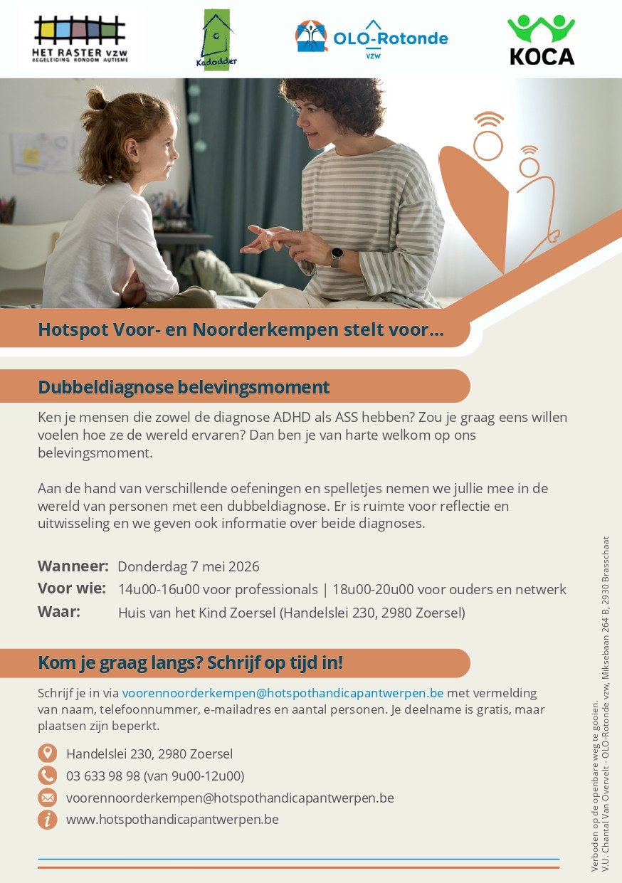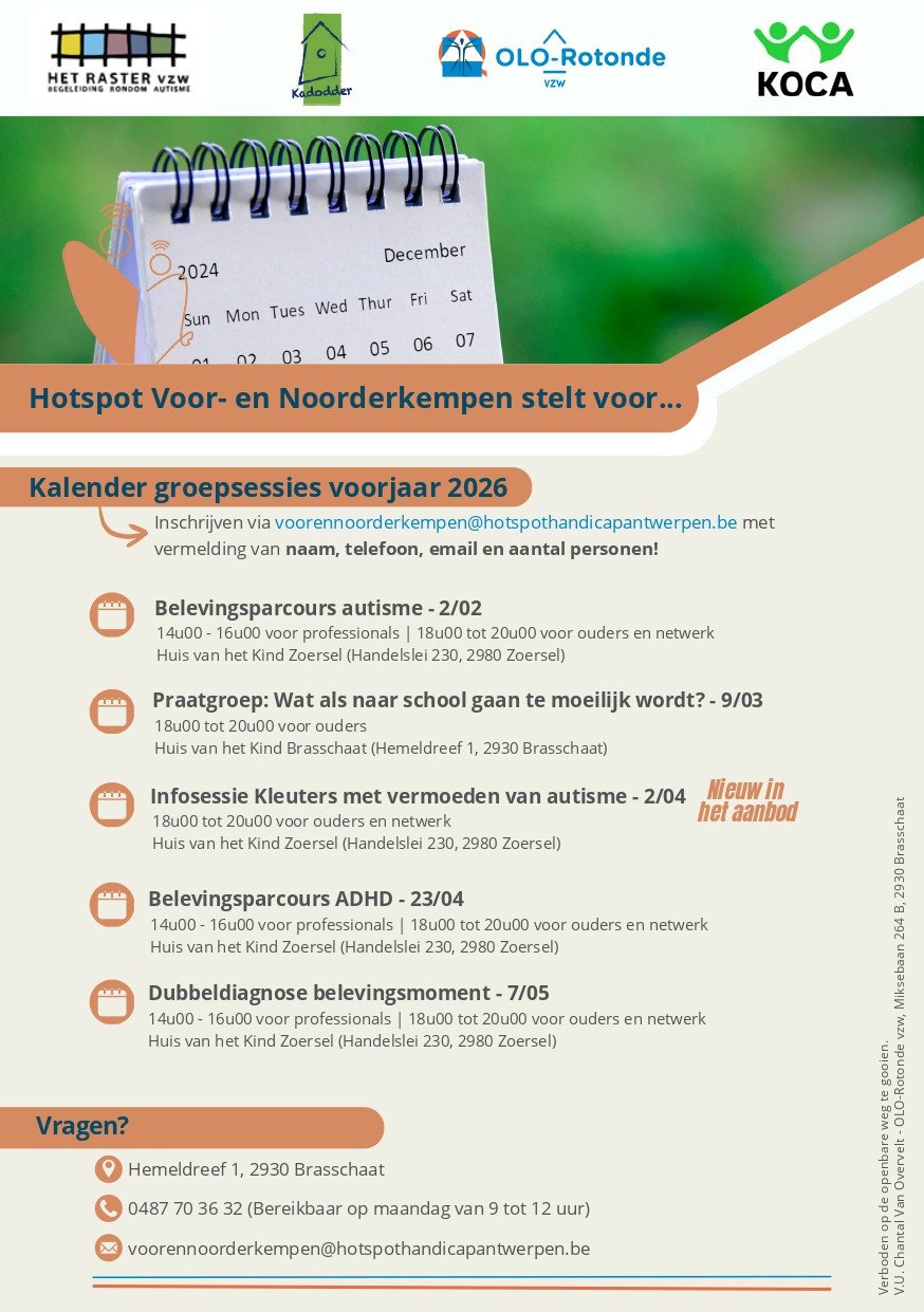 Schrijf je in via voorennoorderkempen@hotspothandicapantwerpen.be met vermelding van naam, telefoonnummer, e-mailadres en aantal personen. Je deelname is gratis, maar plaatsen zijn beperkt.