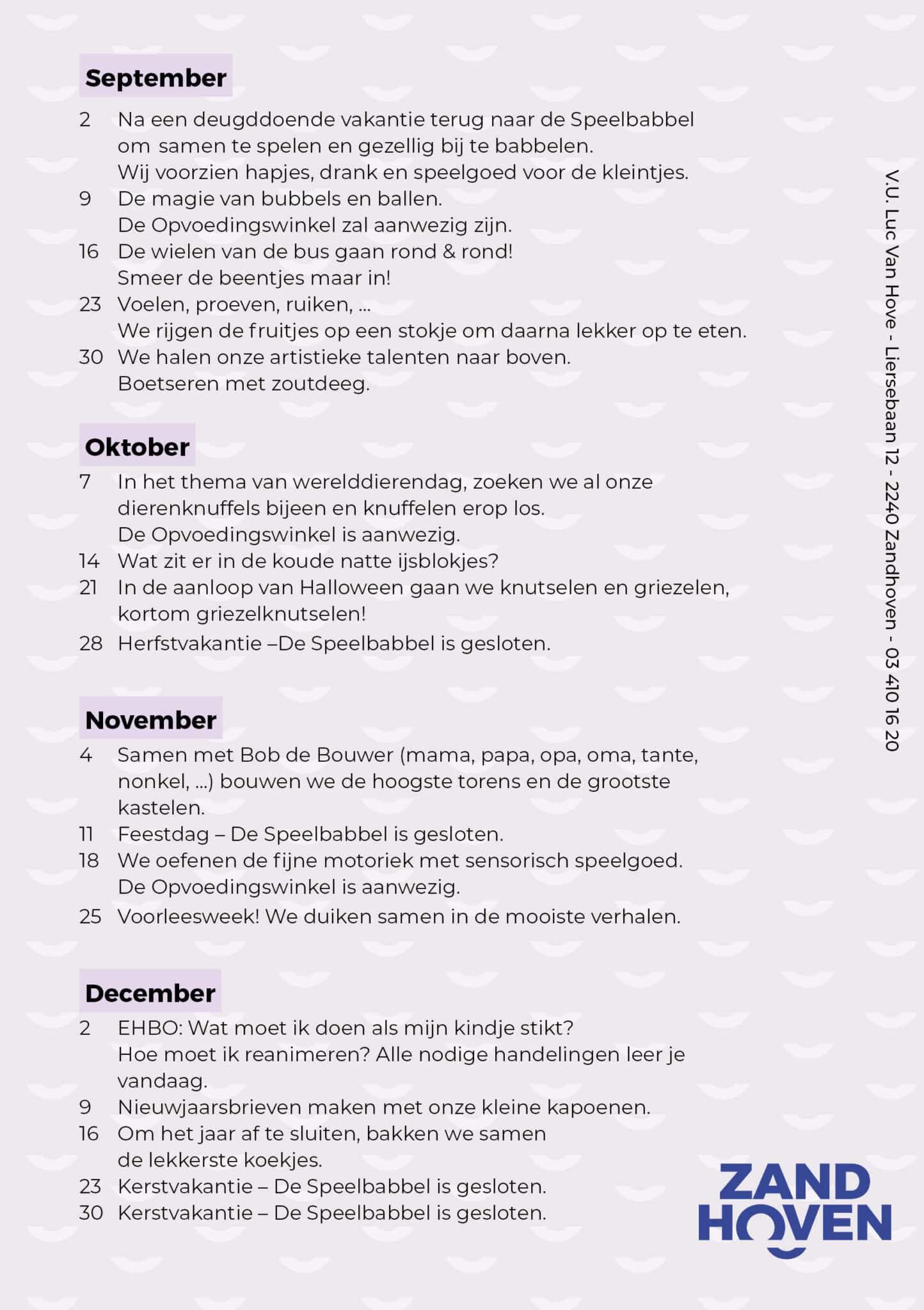 Inschrijven is niet nodig. Je komt en gaat wanneer je wil. Meer info via welzijn@zandhoven.be of 03 410 16 20.