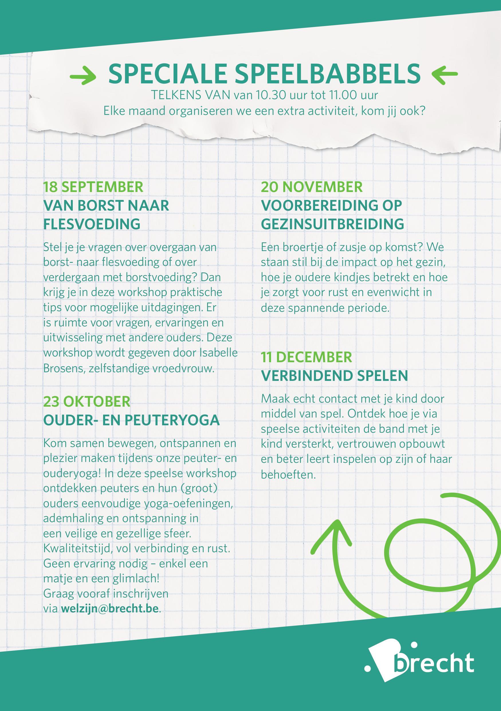 De workshop gaat door tijdens de Speelbabbel. De Speelbabbel gaat door van 10u00-12u00. De workshop gaat door van 10u30-11u00. Je hoeft je niet vooraf in te schrijven.