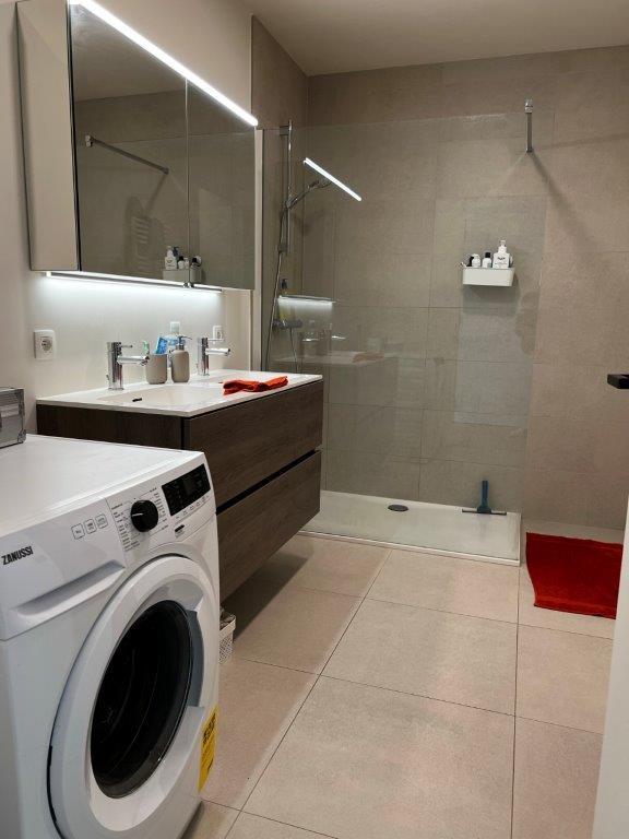 Dit gezellig en lichtrijk recent appartement op de 2e verdieping beschikt over een ruime woonkamer die toegang geeft tot het mooie zuid-west gericht terras, een open ingerichte keuken met combi microgolfoven, frigo met vriesvak, vaatwasmachine, kookvuur en dampkap.