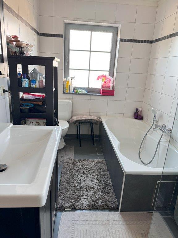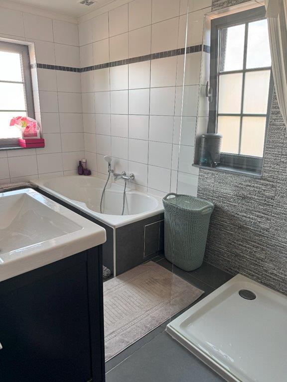 Op de 1e verdieping zijn er 3 slaapkamers (13m², 12m², 10m²) en een badkamer met lavabo, douche, ligbad en toilet aanwezig.