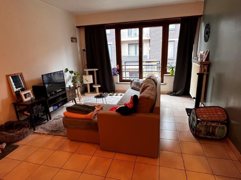 Dit gezellig appartement, gelegen op de 1e verdieping, beschikt over een inkomhal, een ruime woonkamer met open keuken, een berging, 1 slaapkamer en badkamer met lavabo, ligbad en toilet.