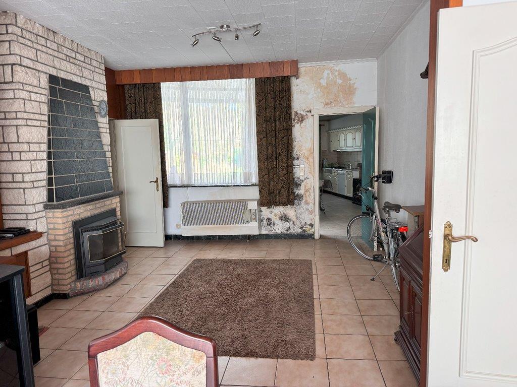 Deze zeer ruime te renoveren woning beschikt op het gelijkvloers over een inkomhal, een woonkamer en een keuken met aanpalend een badkamer.
