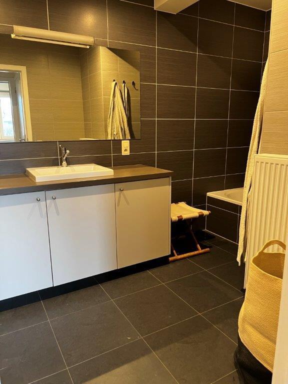 Dit gezellig, ruim en energiezuinig appartement beschikt over een inkomhal, een ruime woonkamer met toegang tot het terras, een open ingerichte keuken met aangrenzende berging met plaats voor wasmachine, droogkast en diepvries, 2 mooie slaapkamers (14 m² en 8,50 m²), een apart toilet en een badkamer met dubbele lavabo en ligbad/douche.