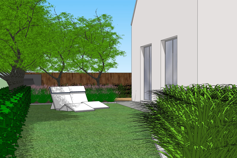 Aanleg van een tuin bij een vrijstaande nieuwbouwwoning.