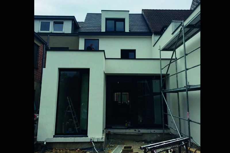 Verbouwing van een rijwoning. De keuken zal naar de voorgevel gebracht worden en de leefruimte naar de achterzijde. De aanbouw is in slechte staat waardoor deze zal afgebroken en heropgebouwd worden.