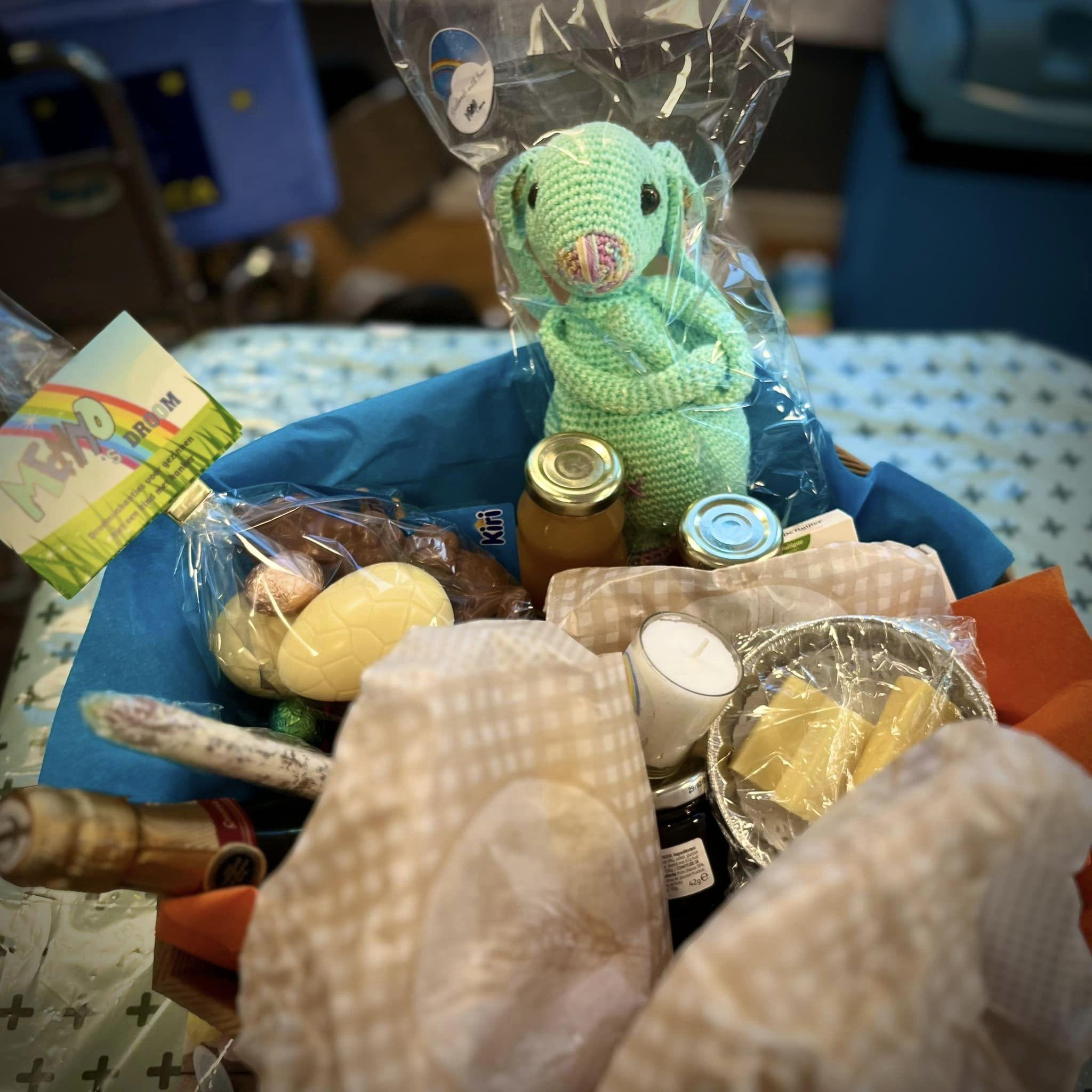 De KiKOV-paashaas springt graag even binnen bij wie op paasdag in het ziekenhuis moet blijven. En hij brengt een ontbijtmand vol lekkers mee. Want ook in het ziekenhuis mag het een feestdag zijn.