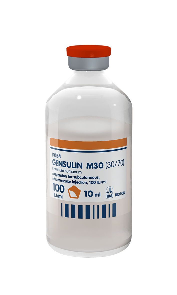 Gensulin® M30 est un mélange d'insuline à courte et à longue durée d'action (suspension isophane biphasique). Le début de l'action (réduction de la glycémie) se produit dans les 30 minutes suivant l'injection, le pic d'action - entre 2 et 8 heures et la durée va jusqu'à 24 heures et dépend de la dose.