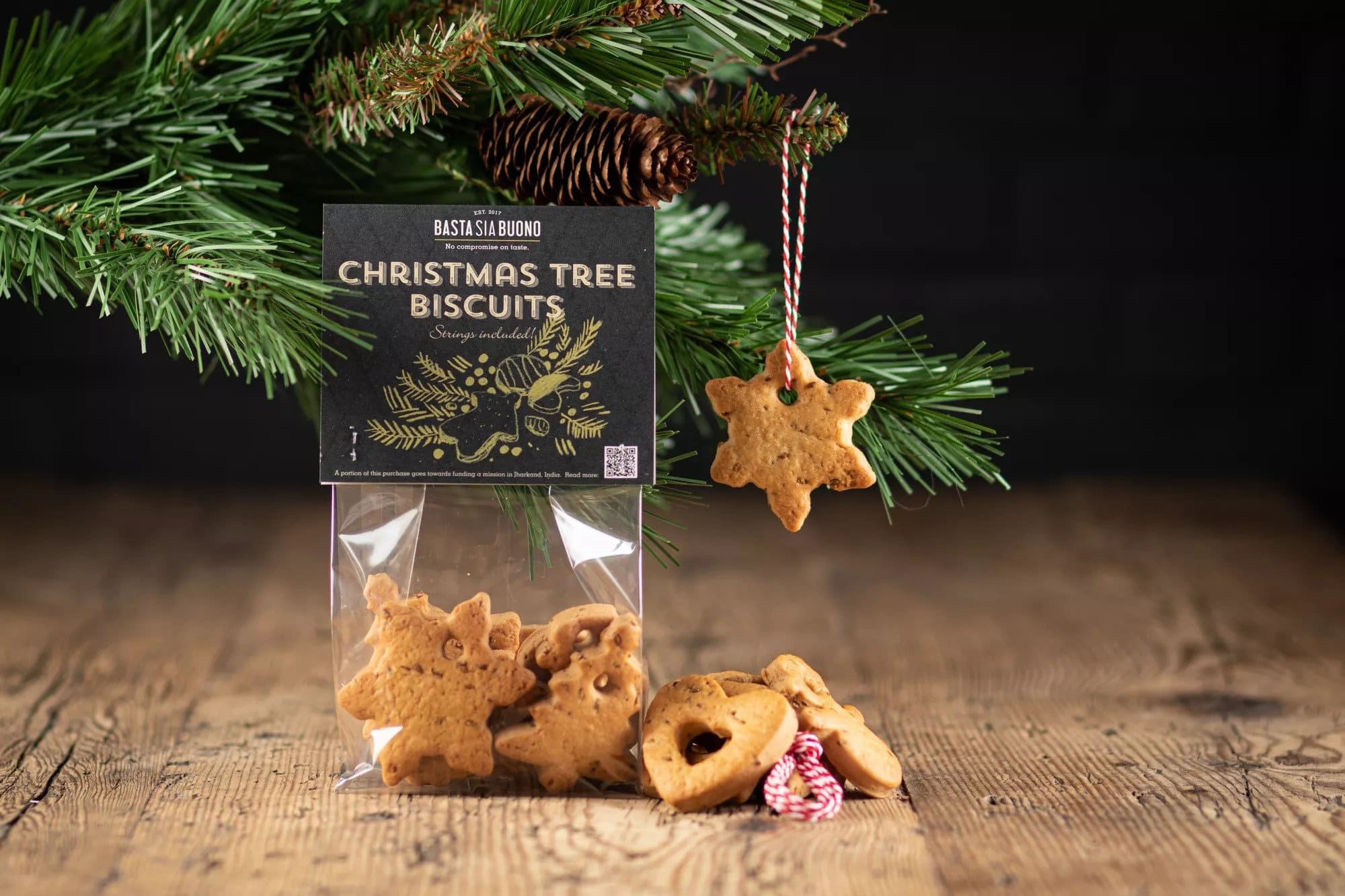 Ben je al bezig met je Kerstversiering? Dan hebben we een goeie tip! Hang dit jaar eens wat lekkers in de boom! Origineel, lekker en zo steun je het ontwikkelingsproject dat Basta sia Buono in India steunt, want van elke pakje koekjes, gaat er 1 euro naar daar.