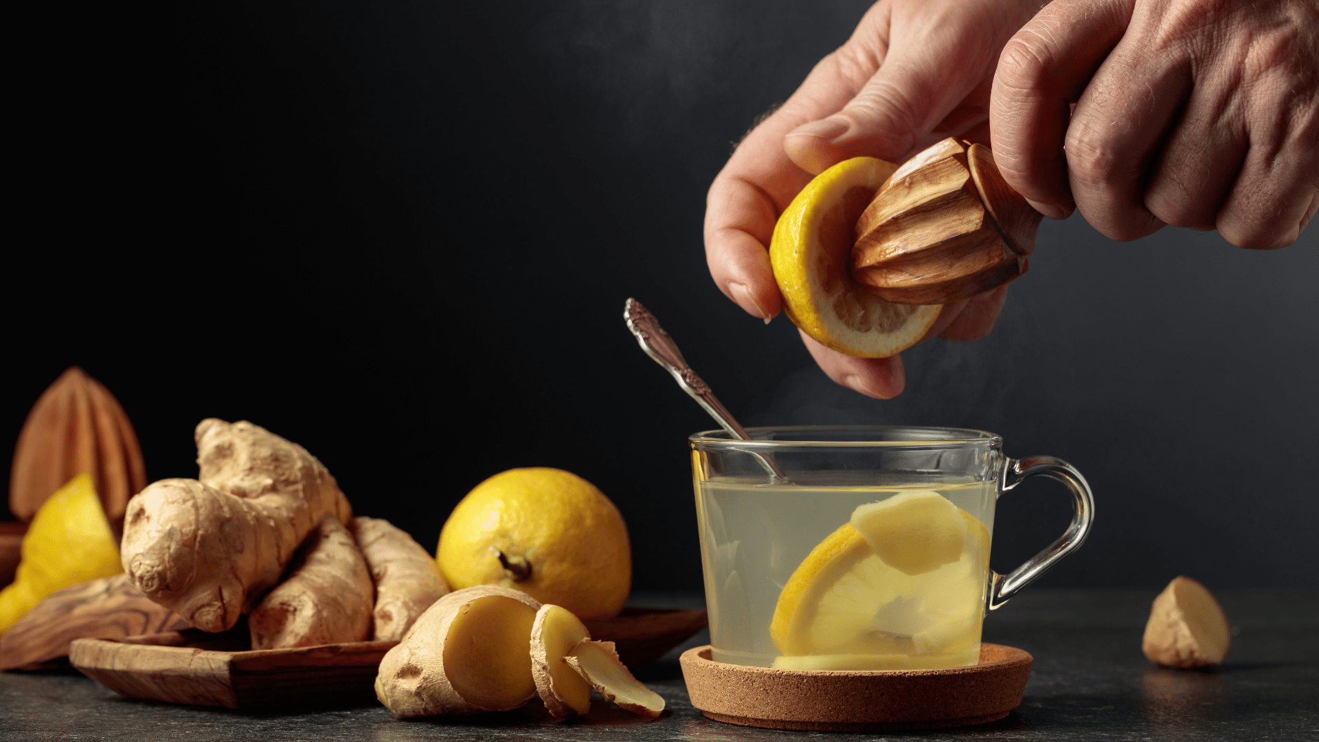 - Met citroen en honing: Een klassieker die de thee zacht en zoet maakt, en je weerstand een extra boost geeft. Honing heeft antibacteriële eigenschappen en kan verzachtend werken bij keelpijn. Citroen zorgt voor een verfrissend accent en extra vitamine C. Let wel op: honing mag je niet in te hete te doen, want dan doe je de werking teniet!