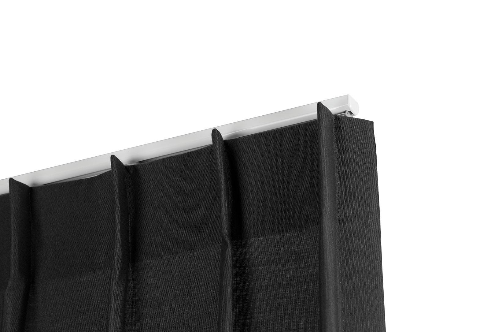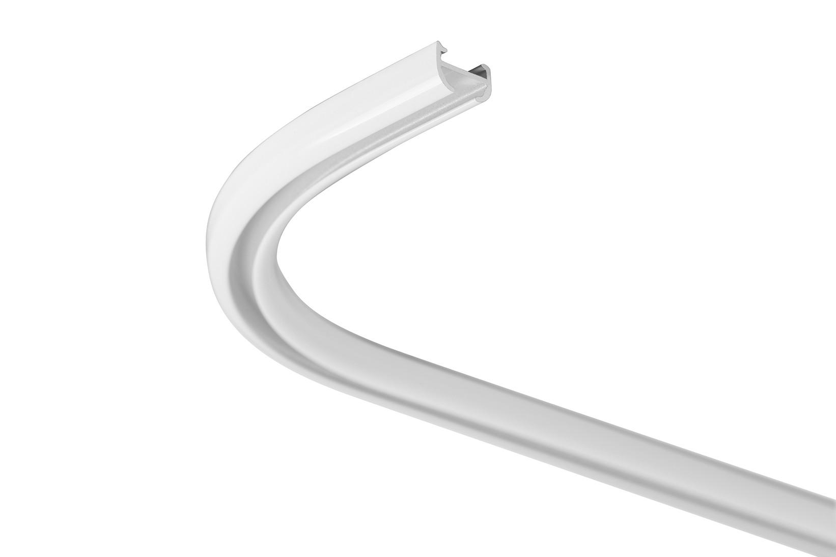 - Een mooi afgeronde, elegante gordijnrail voor onzichtbare plafondmontage van vitrages en middelzware gordijnen.