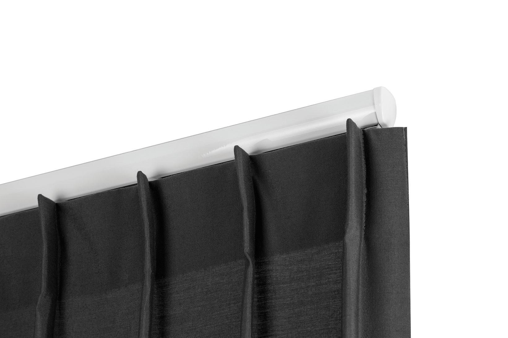- Een robuuste, afgeronde gordijnrail die onzichtbaar tegen het plafond geplaatst kan worden