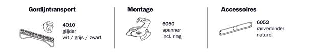 - Een robuuste, afgeronde gordijnrail die onzichtbaar tegen het plafond geplaatst kan worden