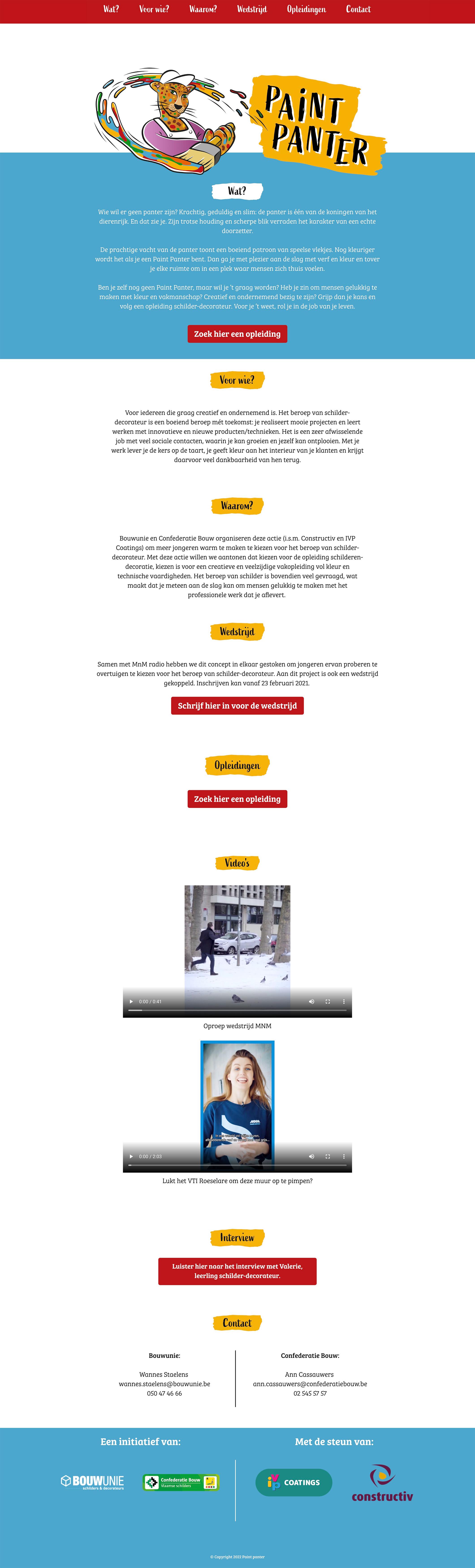De Paint Panter site is een compacte onepager met een flashy design. To the point, no-nonsense en met content volledig op maat van de doelgroep.