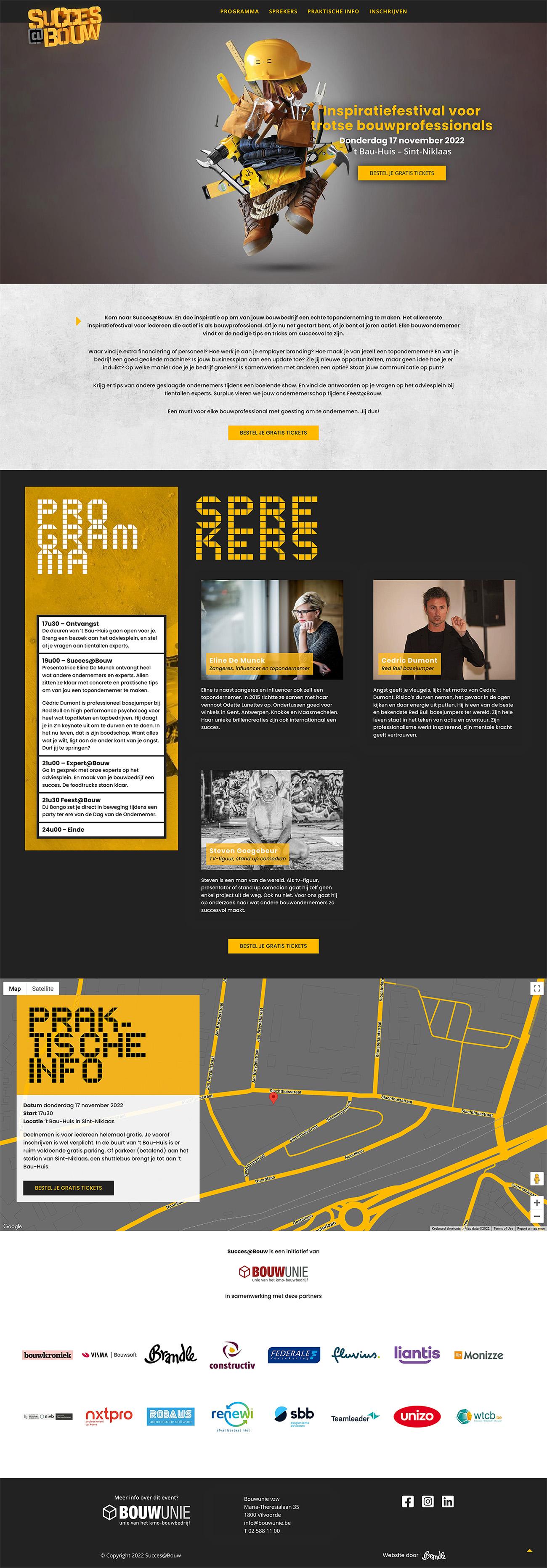 Een specifieke evenementwebsite zorgt ervoor dat het voor de bezoekers erg duidelijk is waar het om gaat. We kozen voor een one-pager met alle informatie en een integratie die de inschrijvingen op een makkelijke manier beheert. De website deelt voornamelijk praktische informatie over het evenement, de sprekers, het programma, de partners, etc.. en dit alles in een stoere branding die bij het evenement past.