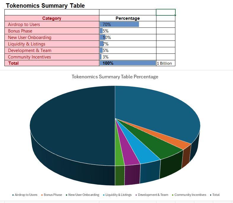 Community Focus: 75% (750 million) goes straight to users, with 70% in the airdrop and 5% in the bonus phase, all unlocked at launch.