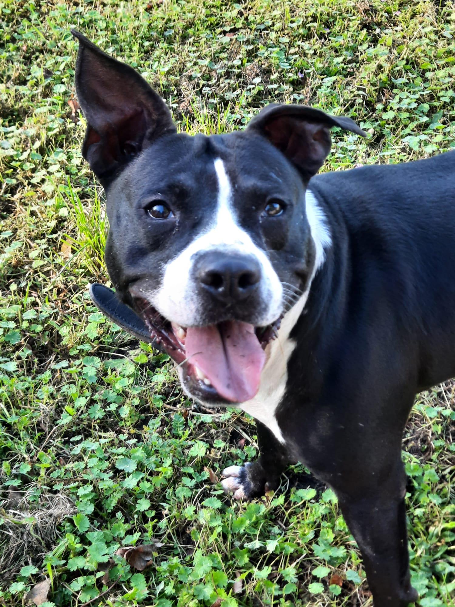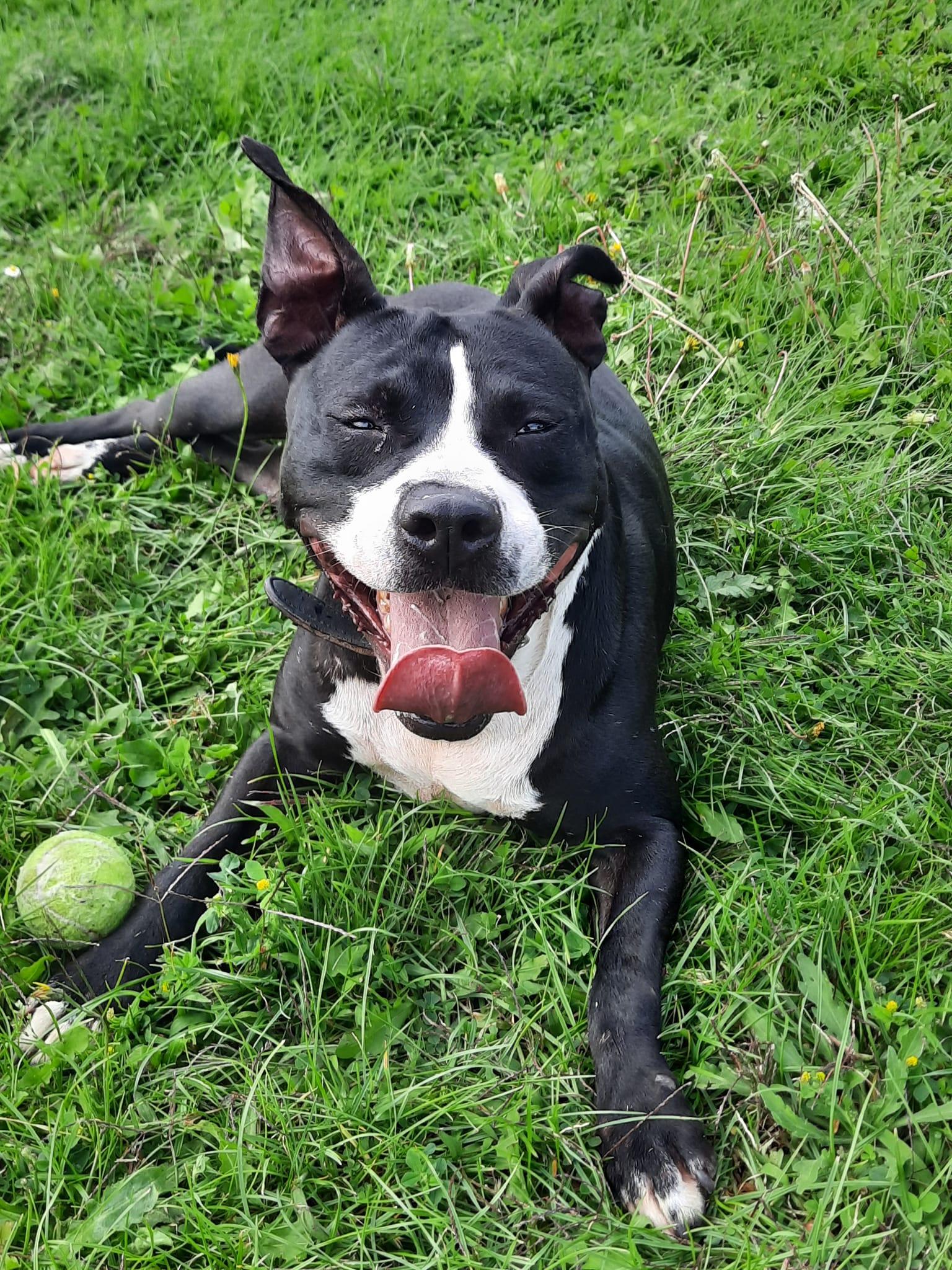 Dit is MnM, een erg leuke pitbull reu geboren op °22/12/2019. Hij werd in beslaggenomen met een 10-tal anderen pitbulls omwille van slechte huisvesting, ze leefden allemaal in vieze hokken. SCSP kon vijf van hen ophalen, gelukkig zijn ze gespaard gebleven van verkeerde bedoelingen.