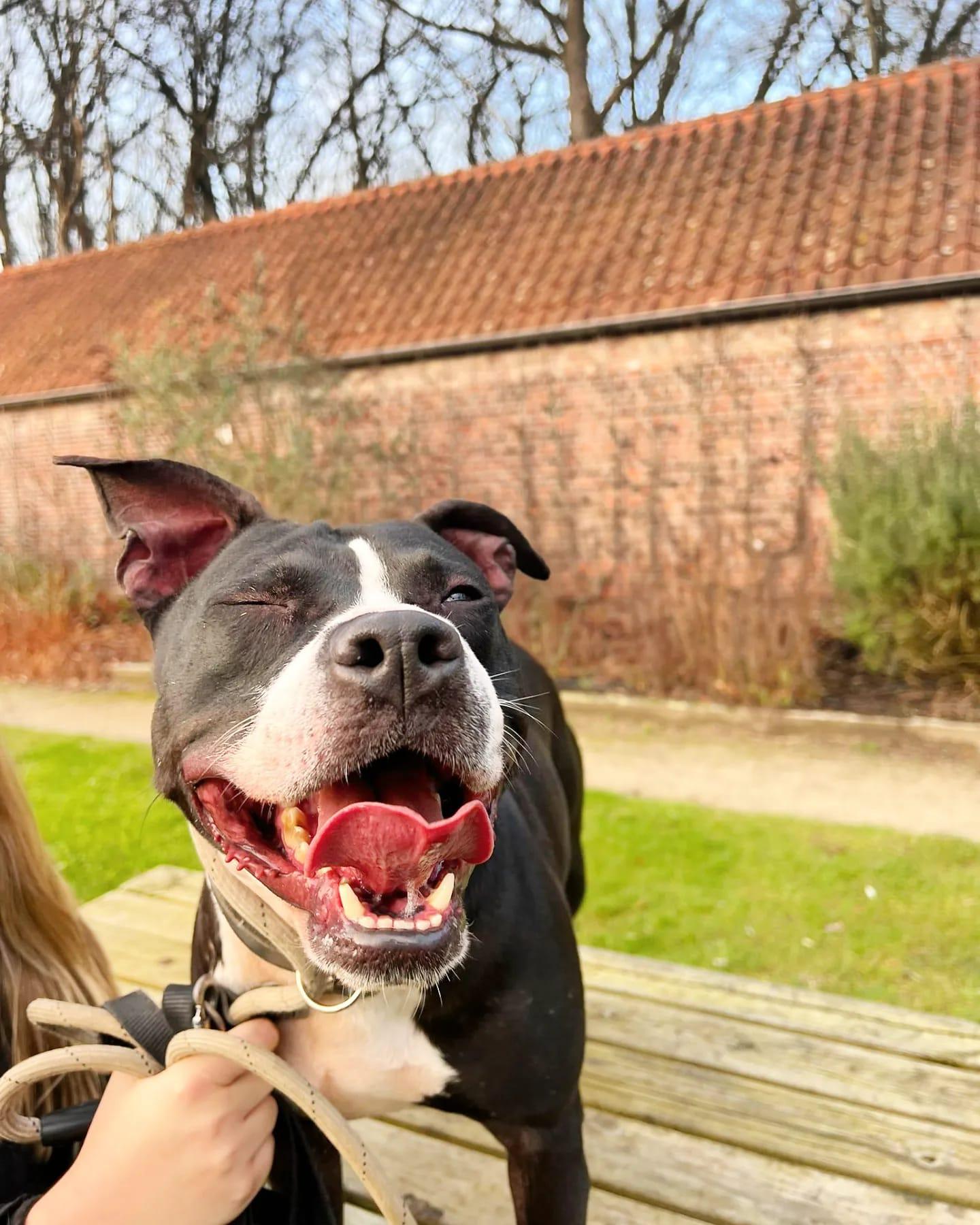 Gezien zijn bruutheid en hij nog veel te leren heeft plaatsen we hem niet bij kleine kindjes. MnM wordt niet met andere honden en katten geplaatst.