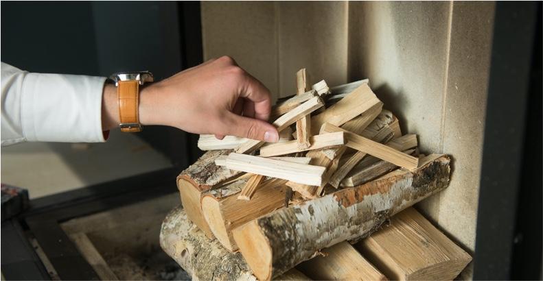-Steek het vuur van boven aan. Dit zorgt voor een minimale rookontwikkeling: het koude rookkanaal wordt voorverwarmd. De gassen en de rook die vrijkomen uit het onderliggende hout verbranden alvast.