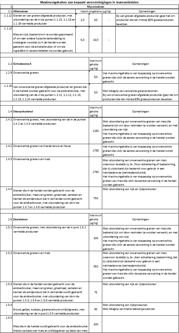 Hieronder zijn de maximumgehalten aan verontreinigingen in voedermiddelen weergegeven :