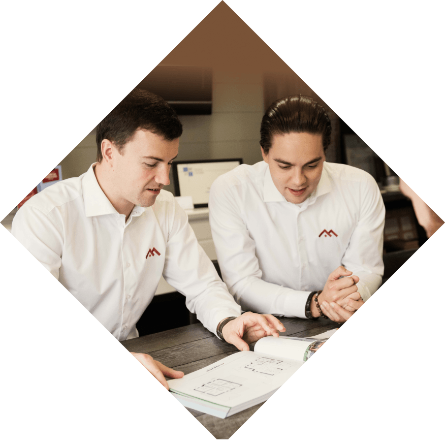 De uitvoeringsplannen, aangepast door de architect en noodzakelijk voor een zorgeloze werf, geven we enkel vrij wanneer alles 100% vaststaat. Zo bezitten de juiste mensen steeds over de correcte informatie en kunnen we samen zorgeloos starten aan de bouw van jouw droomwoning.