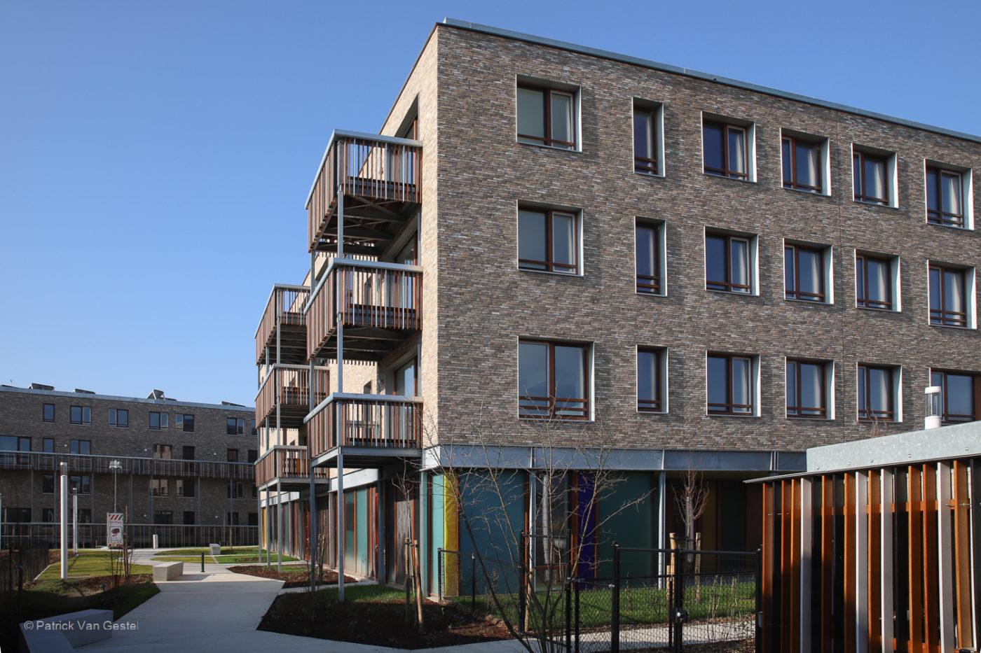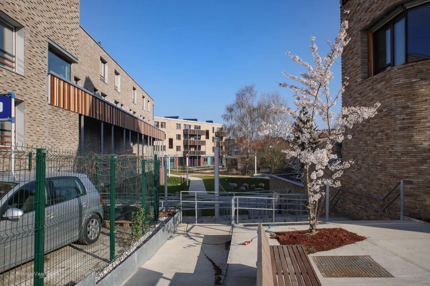 Le projet prévoit la construction de 4 bâtiments (rez-de-chaussée + 1 à 3 étages) sur le site situé entre Huilerieslaan, Neerstallesteenweg, Eaustraat et Max Wallerstraat à Forest. 59 logements seront construits, dont des logements sociaux et des logements de classe moyenne. La gestion des logements sociaux sera confiée au Foyer du Sud, tandis que la commune de Forest s'occupera des logements intermédiaires. Quarante places de parking seront également aménagées, dont trente-huit en sous-sol. Une crèche communale complète le projet. Les matériaux utilisés pour la façade sont la brique et le bois. Les appartements disposeront également de terrasses. Compte tenu de l'augmentation constante des coûts de chauffage, une attention particulière a été accordée à l'isolation des bâtiments. Les bâtiments seront donc conformes à la réglementation PEB 2015.