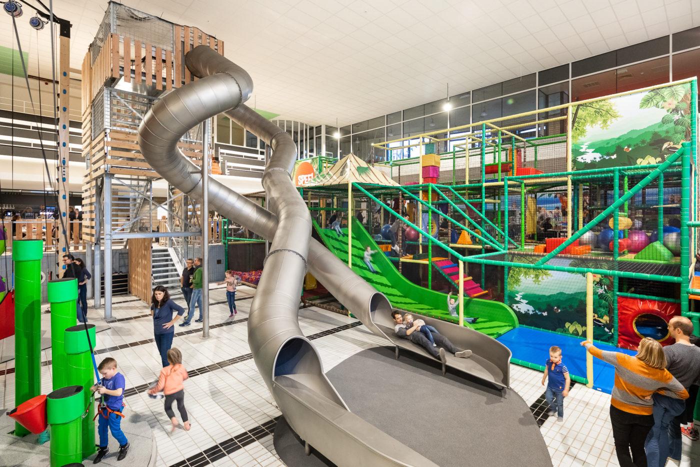 Het oude zwembad werd heringericht tot deels een nieuwe sporthal en een avontuurlijk indoor speelplein voor kinderen tot veertien jaar.