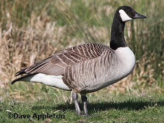 De Canadese gans is een grote, bruingrijze gans met zwarte kop, hals en snavel. De ganzen hebben een grote witte wangvlek.