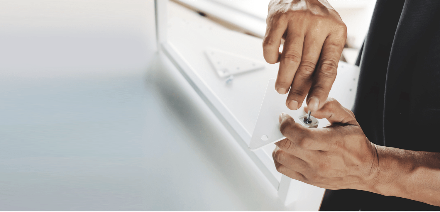 - In elkaar zetten van scherm-meubels en wandplanken.