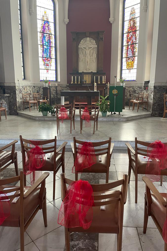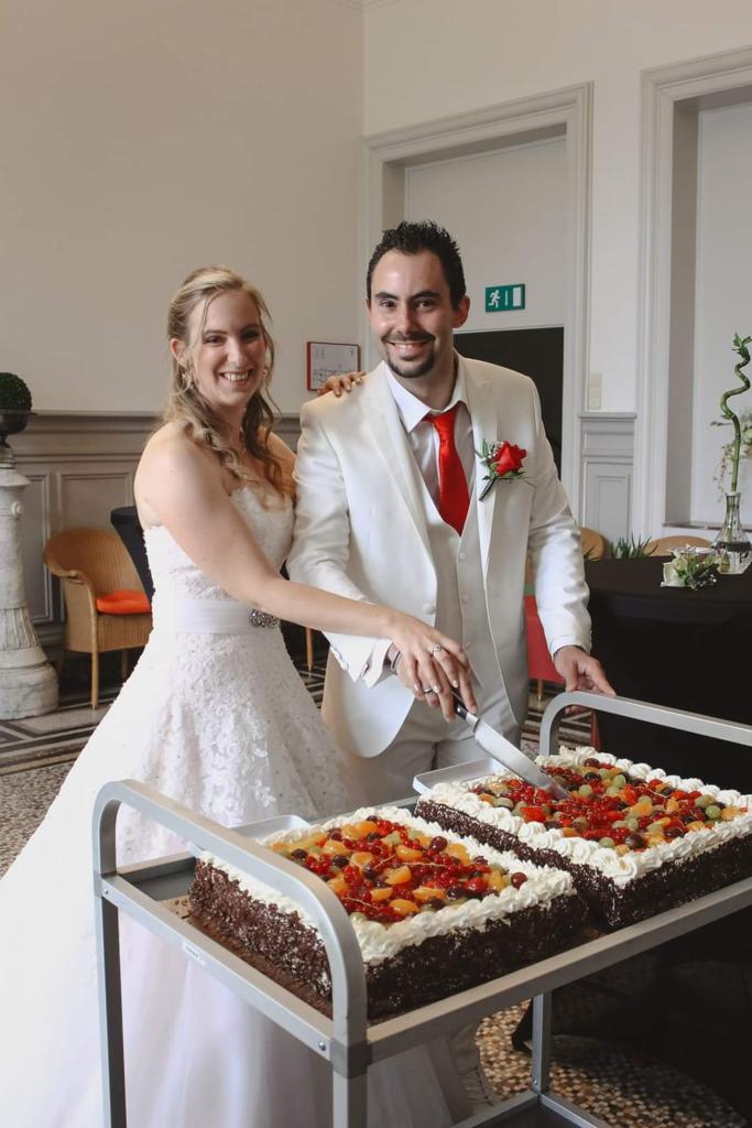 Deze zomer was het dan eindelijk het grote moment. Het was een prachtige dag met het park op zijn best en een stralende zon. Eerst was er het kerkelijk huwelijk in de kapel van het rusthuis. Vervolgens was er een receptie in de salons van ons rusthuis waar een overheerlijke bruidstaart werd aangesneden.