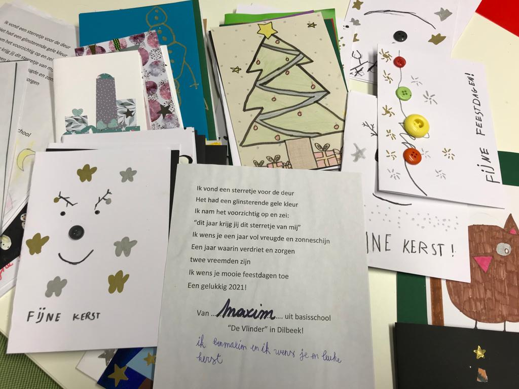 Onze bewoners hebben de afgelopen dagen heel wat leuke tekeningen, kaartjes en knutselwerkjes ontvangen. Ze werden met veel enthousiasme gemaakt door de leerlingen uit verschillende nabij gelegen scholen. Een heel erg leuke en hartverwarmende verrassing voor onze bewoners.