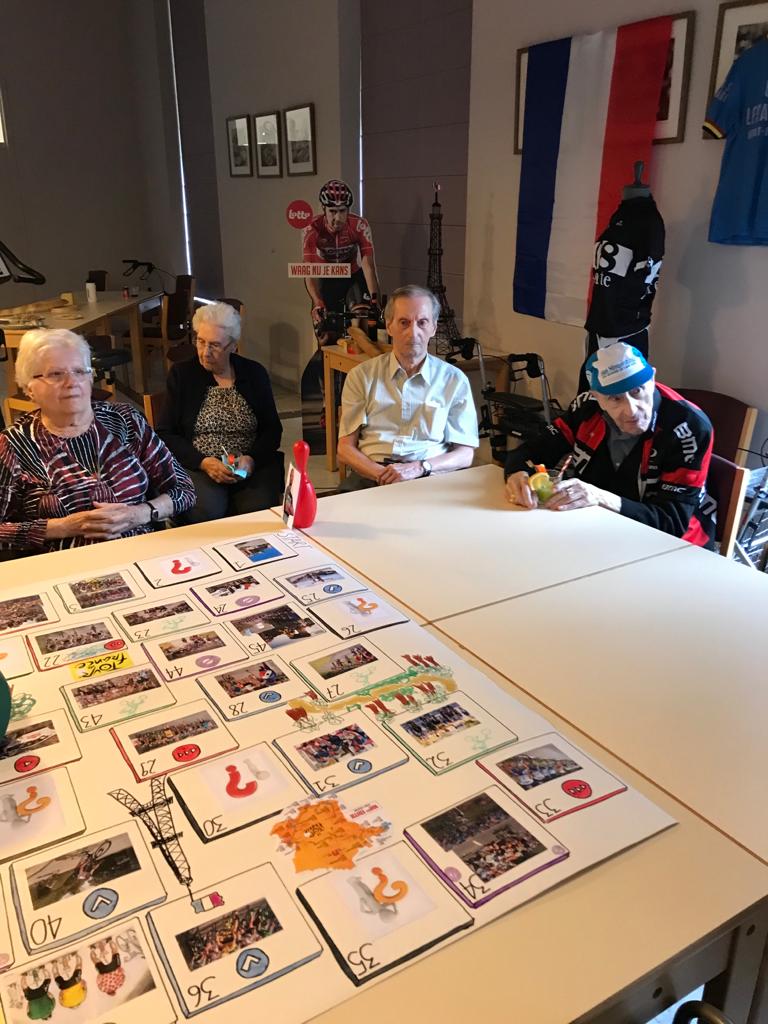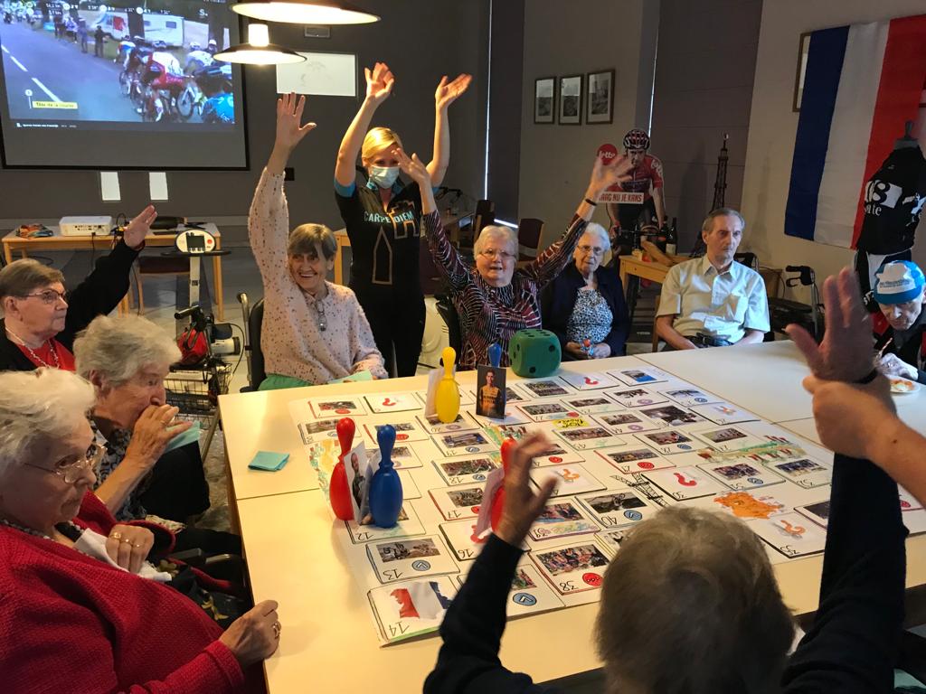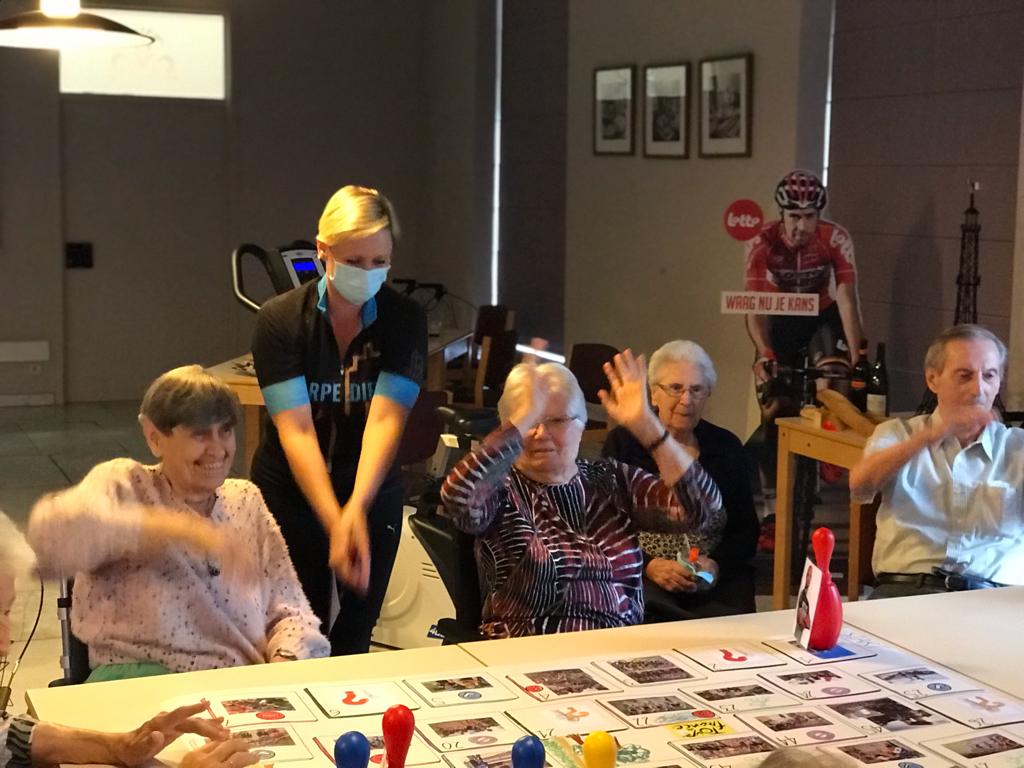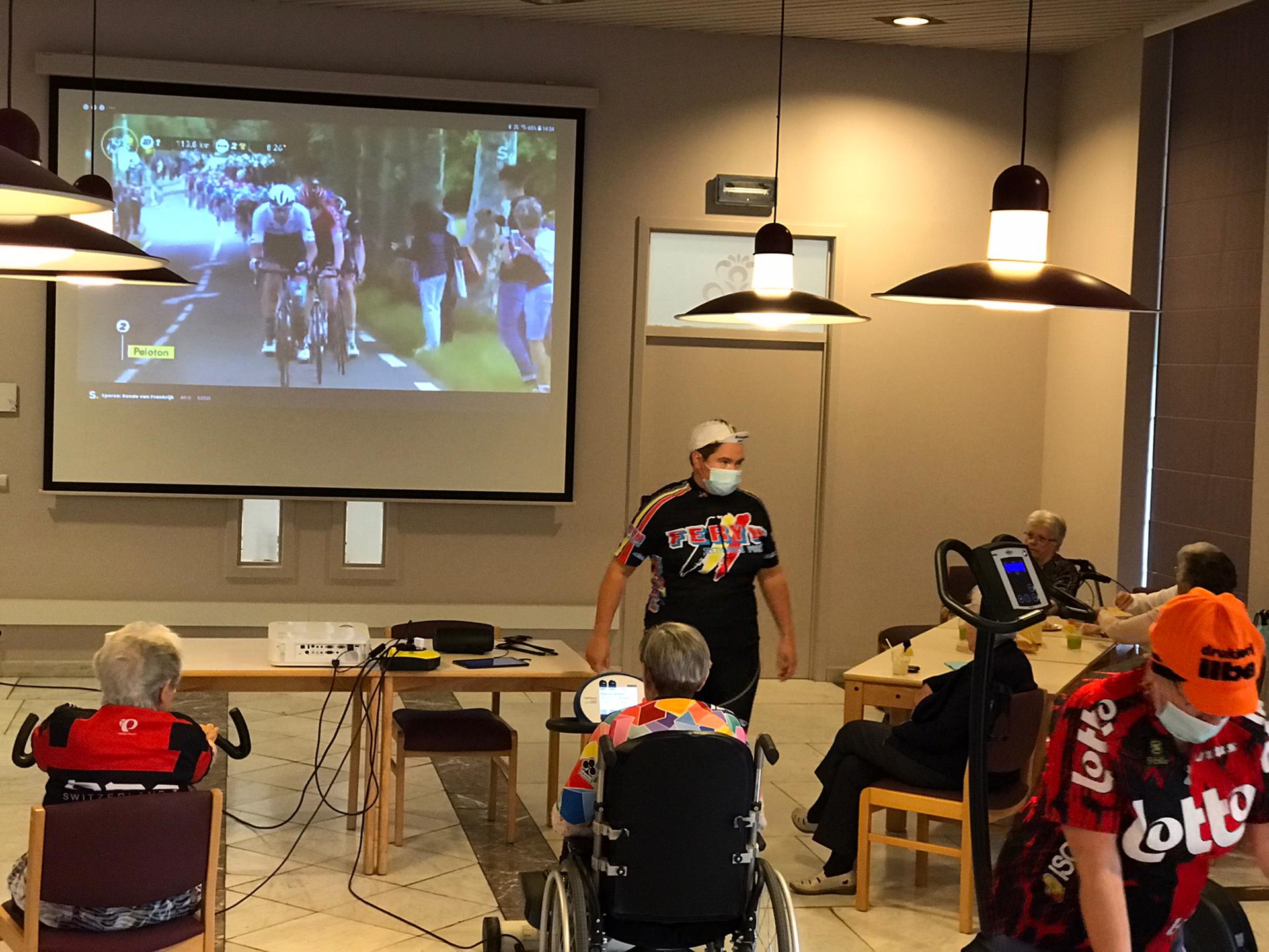 Wielrennen is van alle tijden en alle leeftijden. Ook in ons woonzorgcentrum wordt de Tour de France met veel interesse gevolgd. En gisteren was het aan onze bewoners en medewerkers. Begeleid door de beelden van de bergbeklimming reden zij samen hun eigen Tour de France. Dat deden ze op de hometrainers van het woonzorgcentrum.