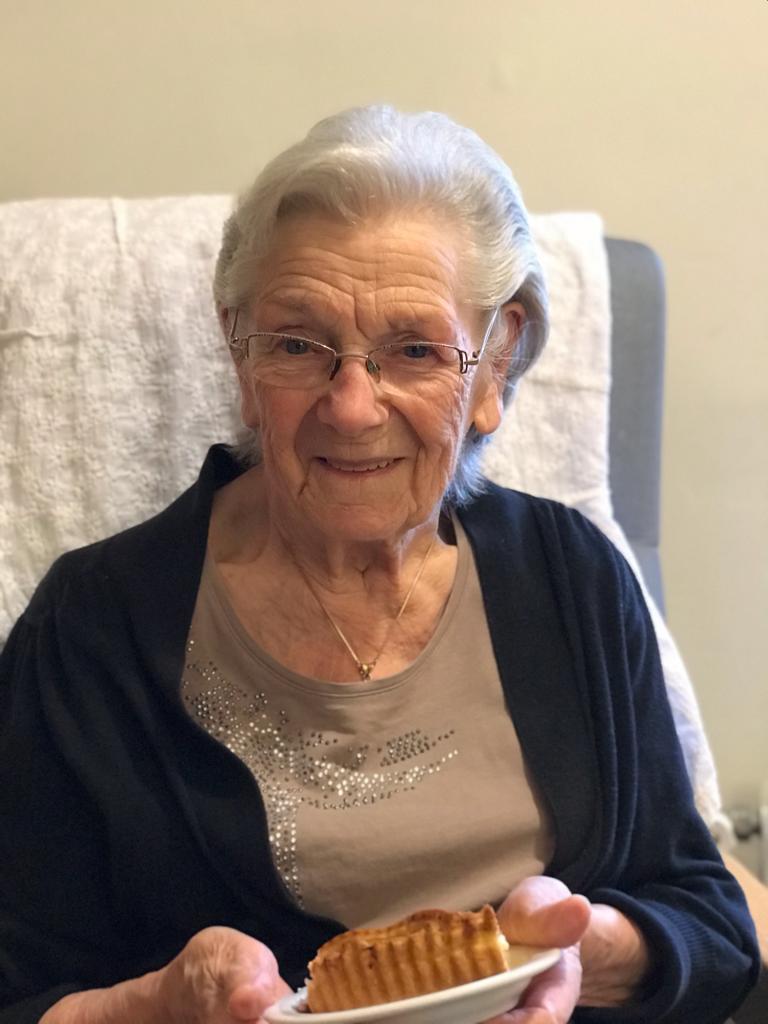 Samen met dochter Pascale trakteert ze de medebewoners op wat lekkers.