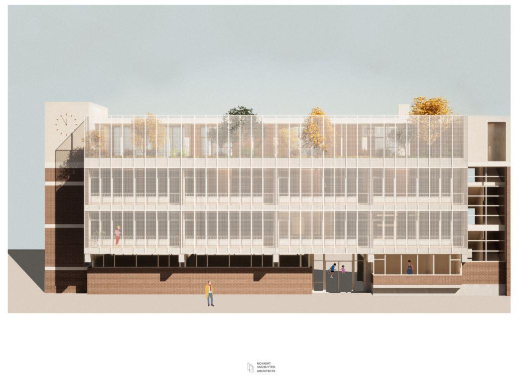 Deze ingreep draagt bij aan de duurzame modernisering van het schoolgebouw, met respect voor de bestaande architectuur en de pedagogische werking van de school.