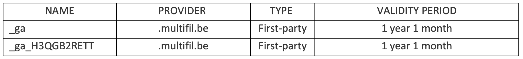 ARTICLE 4. WHAT COOKIES DOES MULTIFIL USE, FOR WHAT PURPOSE AND FOR WHAT PERIOD OF VALIDITY?
