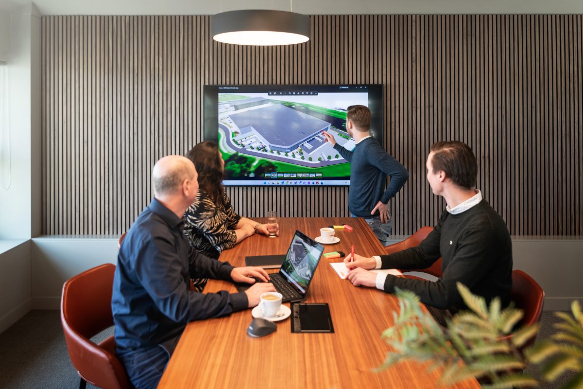 We maken het budget op in onze custom webtool. Samen met de klant simuleren we in real life het gewenste pand. Hier creëren we een realistisch 3D-model. Samen met de klant bepalen we de benodigde inhoud van het pand: kantoren, laad- en loskades, gelijkvloerse poorten, nooddeuren, mezzanine, lichtinval en technieken.