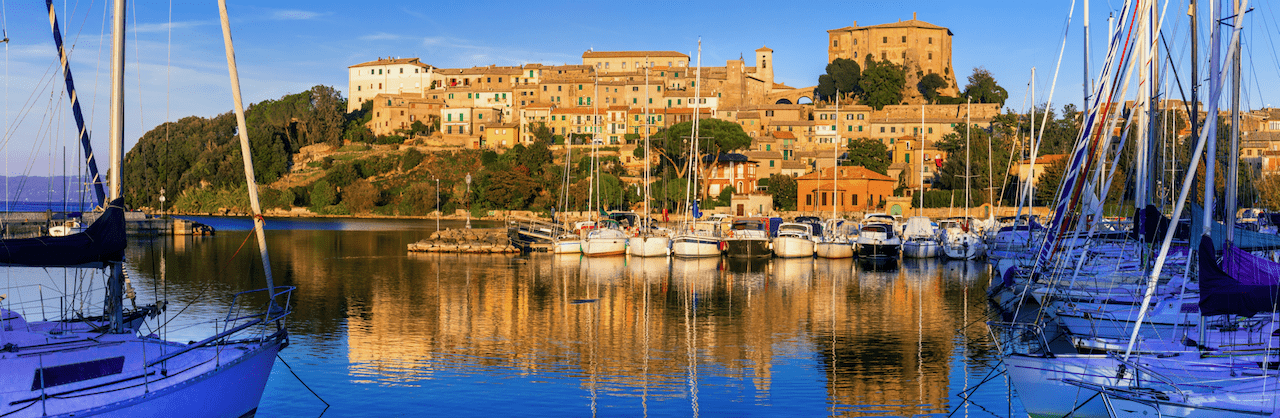 Bolsena ist ein ausgezeichneter Ausgangspunkt, wenn Sie einen Campingplatz für eine oder mehrere Nächte am See suchen. Der Lago di Bolsena ist nicht nur der größte See in Latium, sondern auch der größte Vulkansee Europas. Sie schwimmen, surfen, segeln oder kreuzen buchstäblich auf einem alten Vulkankrater, der mit kristallklarem Wasser gefüllt und von Hügeln und Lavakämmen umgeben ist. Der See hat einen Umfang von 43 Kilometern und ist ideal für eine Tour mit dem Auto, Motorrad oder Fahrrad. Wenn Sie den See im Uhrzeigersinn umrunden, ist Montefiascone der erste Ort auf Ihrem Weg. Sie thront hoch über dem See und ist an der großen Kuppel des Doms zu erkennen. Auf dem weiteren Weg entlang des Sees liegen die malerischen Fischerdörfer Marta und Capodimonte. Es gibt 2 kleine Inseln im See, Isola Martana und Isola Bisentina. Die erste ist Privatbesitz, die zweite können Sie mit einem Führer besuchen. Weiter nördlich finden Sie zahlreiche Weinberge an den Flanken der umliegenden Hügel und das schöne Dorf Gradoli.