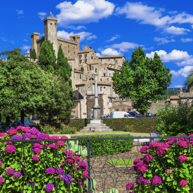 In Latium ist man eigentlich erst, wenn man sich der Stadt Bolsena nähert, aber schon die Autobahn zwischen der Ausfahrt Orvieto und Bolsena ist traumhaft schön. Der Anblick von Orvieto, einer Stadt, die auf einem vulkanischen Tuffsteinfelsen erbaut wurde, stimmt Sie schon auf diese Route ein. Nach Orvieto schlängelt sich die Straße bis ins Zentrum der historischen Stadt Bolsena, die am gleichnamigen See liegt. Die Geschichte dieses Ortes reicht Jahrhunderte zurück und hat sowohl das Wunder der blutenden Hostie als auch die Legende von Santa Cristina hervorgebracht, die in der örtlichen Gemeinschaft noch immer lebendig ist. Parken Sie das Wohnmobil, Auto oder Motorrad auf einem der Parkplätze in der Nähe des Dorfes und machen Sie einen Spaziergang über den Corso Cavour, vorbei an der Piazza mit der Kirche San Francesco, über den Corso della Repubblica bis zur Kirche Santa Cristina. Verirren Sie sich dann in den Gassen der mittelalterlichen Oberstadt und steigen Sie hinauf zur Rocca Monaldeschi, einer Burg aus dem 14. Jahrhundert, die über der Stadt thront und einen Panoramablick auf den See bietet.