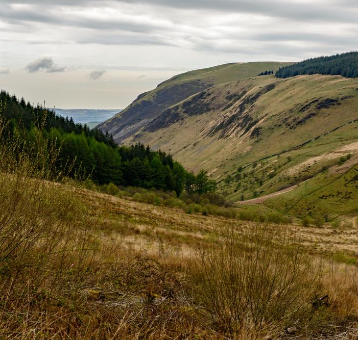 Südlich des Coed y Brenin Forest Park liegt die Stadt Corris und das Corris Craft Centre: neun Handwerksbetriebe, die sich auf alles Mögliche spezialisiert haben, von Schmuck bis Keramik, von handgefertigter Schokolade bis hin zu außergewöhnlichem, handwerklich hergestelltem Gin aus der Dyfi Distillery, der bei den World Gin Awards 2020 drei Medaillen gewann. Von dort aus fahren wir zu den Cambrian Mountains, dem nächsten unberührten Naturgebiet auf unserer Route. Die Cambrian Mountains sind eine der wenigen abgelegenen Wildnisgebiete im Süden Großbritanniens. Nur wenige Straßen führen durch die Berge, aber sie gelten als einige der schönsten auf den Britischen Inseln. Zahlreiche Wanderwege schlängeln sich durch die Cambrian Mountains und erkunden die sanfte Waldlandschaft und die stürzenden Wasserfälle. Sie folgen den Routen mittelalterlicher Mönche, romantischer Schriftsteller und Dichter des 18. Jahrhunderts auf der Suche nach Abenteuern und wandeln auf den Spuren von Viehtreibern und Bergleuten aus dem 19.