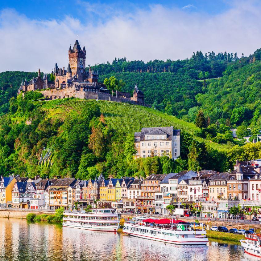 About 25 kilometres south of Koblenz is Brodenbach. The village is located in a wooded area, which makes for a particularly favourable climate. The two side valleys, Brodenbach- and Ehrbach-valley, constantly bring fresh air into the village, which is why it was recognised by the state as a health resort. Brodenbach is an ideal destination for all kinds of hiking and cycling tours. A steep climb takes you to Ehrenburg, a lively castle where you can take an adventurous tour and sample the local delicacies. The perfect relaxation for the whole family. About a twenty-minute drive from Brodenbach is the fairytale-like Eltz Castle with no fewer than eight castle towers. The visit is a journey through eight centuries of history with elements from the Middle Ages and the Renaissance. After a visit to both castles and an invigorating walk in Brodenbach, we continue towards Cochem, a popular destination along the Moselle Valley.