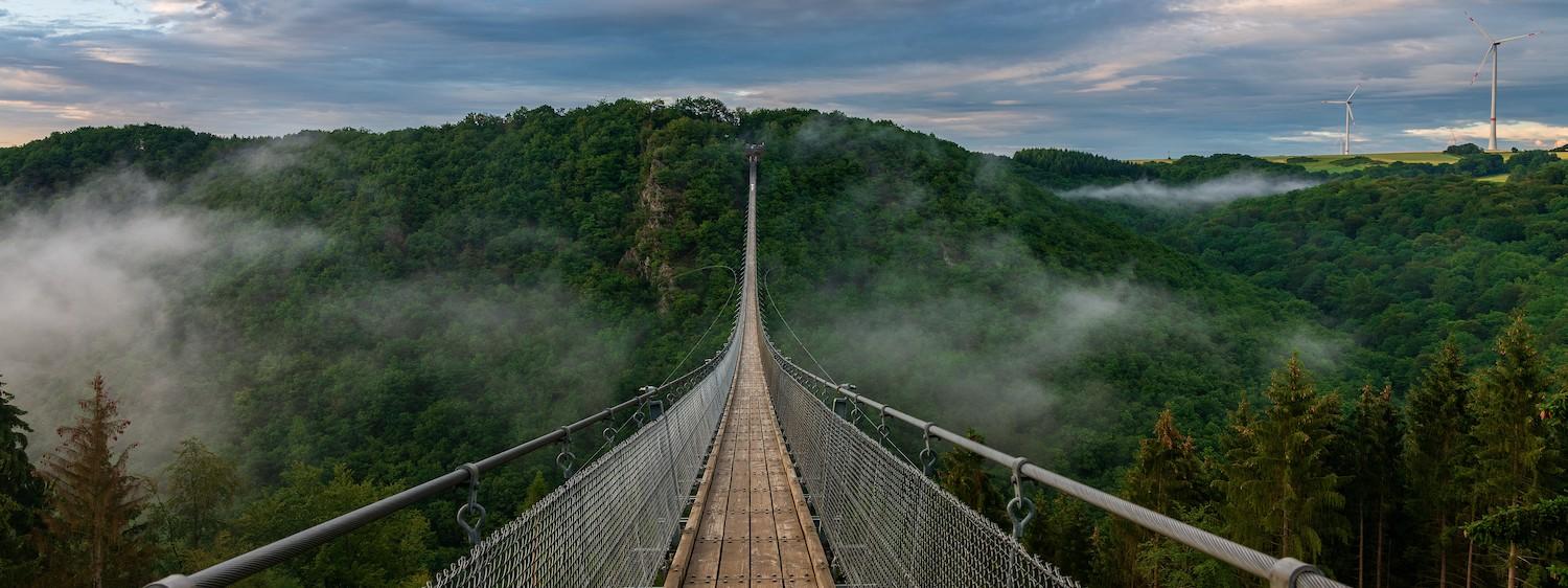 A highlight not to be missed while you are in the area is the Geierlay Hängebrücke. This suspension bridge can only be reached on foot from the villages of Mörsdorf or Sosberg. Here, you can park your camper, car or motorbike and start the hike up. Once on the suspension bridge, you will be treated to a spectacular experience and a beautiful view of the Mörsdorfer Bachtal. The best way to see the bridge is on the Geierlayschleife circular walk of about 6 kilometres, which takes you both over and under the bridge. Please note that you still have to walk 3 km to the bridge and 3 km or more to get back, because you can only cross the bridge in one direction.