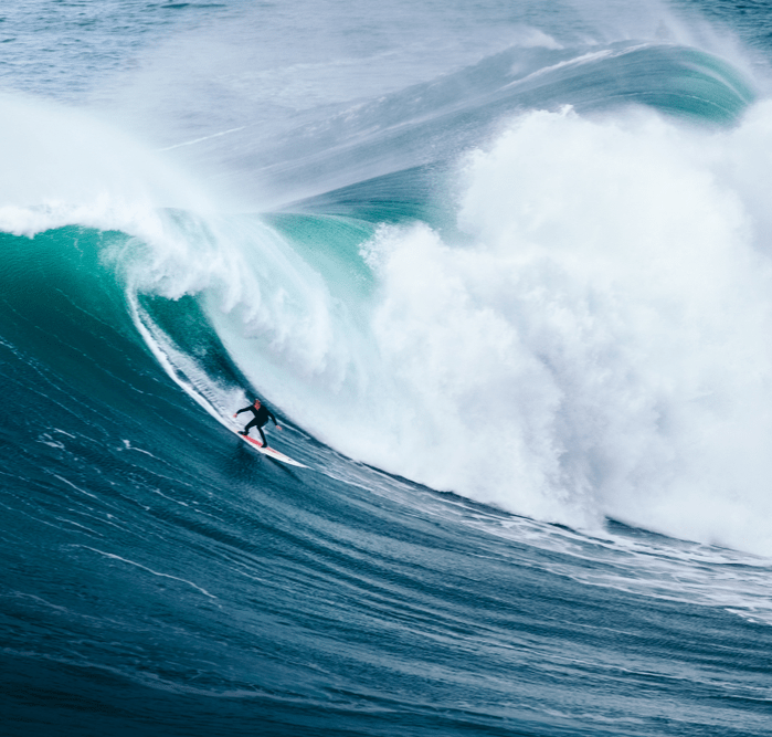 Nazaré is famous for its monstrous waves. It's not for nothing that it has the highest waves in the world. Normally, waves are slowed down by the decreasing depth of the seabed, but this is not the case at Nazaré. Off the coast is a very large undersea ravine that measures 5 km at its deepest. So the waves are given free rein here until they suddenly encounter shallow water off the coast. Gigantic masses of water are thus pushed upwards. You can see this impressive phenomenon especially between October and March because of the storms at sea. In summer, Nazaré is a rather quiet fishing village.