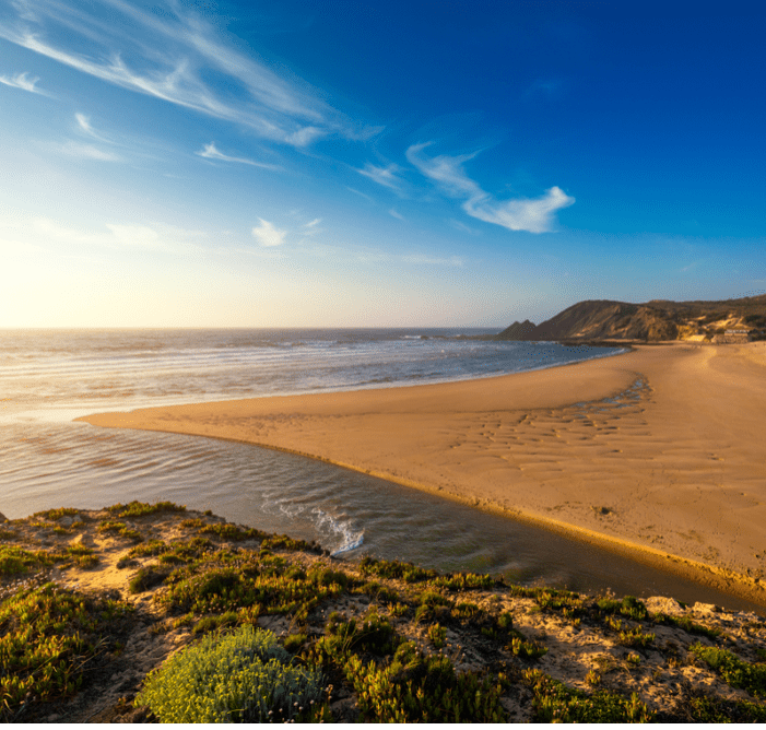 After Lisbon, we leave the big cities and follow the west coast of Alentejo. It is a beautiful region that lends itself to a nice road trip. So, be sure to take the time to move from beach to beach and admire the rugged coastline. We stop every now and then at beautiful little bays. Porto Covo, for example, is such a place with nice beaches where you can also take very nice walks. If you walk along the Almograve coast between April and June, there is a big chance that you will see breeding storks. Just north of Aljezur is Praia da Amoreira. The beach has an extensive stretch of sand and is surrounded by dunes. In the north, the beach is bordered by a dark rock that according to the locals resembles a giant lying down. We leave the west coast and continue our route to the more touristic south of the Algarve.
