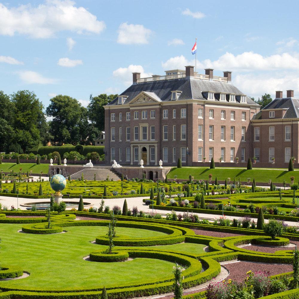 Voordat we Apeldoorn binnenrijden slaan we af richting Paleis Het Loo. Het paleis waar de Oranjes 300 jaar lang woonden en werkten. Momenteel wordt het paleis zelf verbouwd, maar de enorme barokke tuin kun je wel nog bezoeken. De tuinen werden in de 17e eeuw aangelegd in opdracht van koning-stadhouder Willen III en koningin Mary II. De tuin moest hun status en aanzien geven en vooral de bezoekers van het paleis imponeren. En laat ons eerlijk zijn, dat doet de symmetrische paleistuin nog steeds.