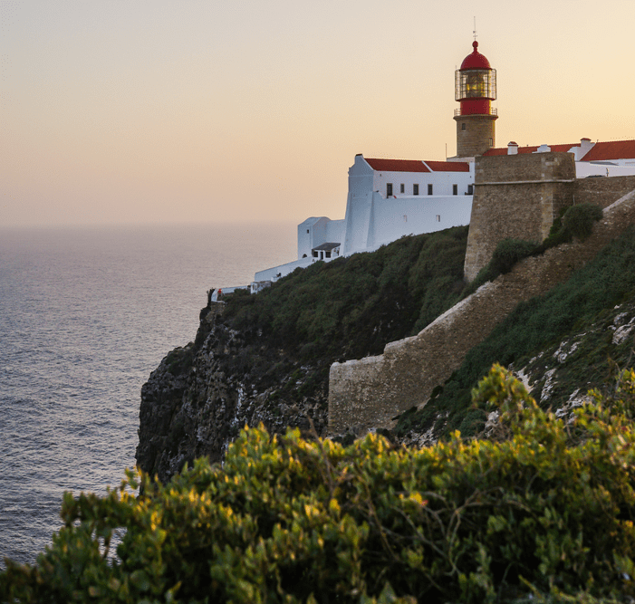 Het zuidelijke deel van de Algarve is een populaire vakantiebestemming, en dat is niet verwonderlijk. Wanneer we Sagres binnenrijden zijn we even stil. Op het puntje van Europa luisteren we naar de krijsende meeuwen en de wilde golven die tegen de rotsen kapot slaan. De stad ligt aan de gelijknamige baai en dicht bij het meest zuidwestelijke puntje van het Europese vasteland: Cabo de São Vicente. De vuurtoren lijkt het einde van de wereld te markeren. De vuurtoren was vroeger een klooster waar de monniken de schepen op zee waarschuwden voor gevaar.