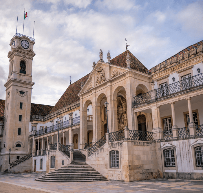 Vanuit Porto rijden we verder zuidwaarts naar de stad Coimbra. De stad is gelegen aan de oevers van de Mondego, maar is vooral bekend om zijn universiteit die zich op het hoger gelegen deel van de stad bevindt. De universiteit is de oudste van Portugal en een van de oudste van Europa. Als je daar over de Pátio das Escolas loopt, word je overweldigd door de grote, 13e-eeuwse gebouwen.